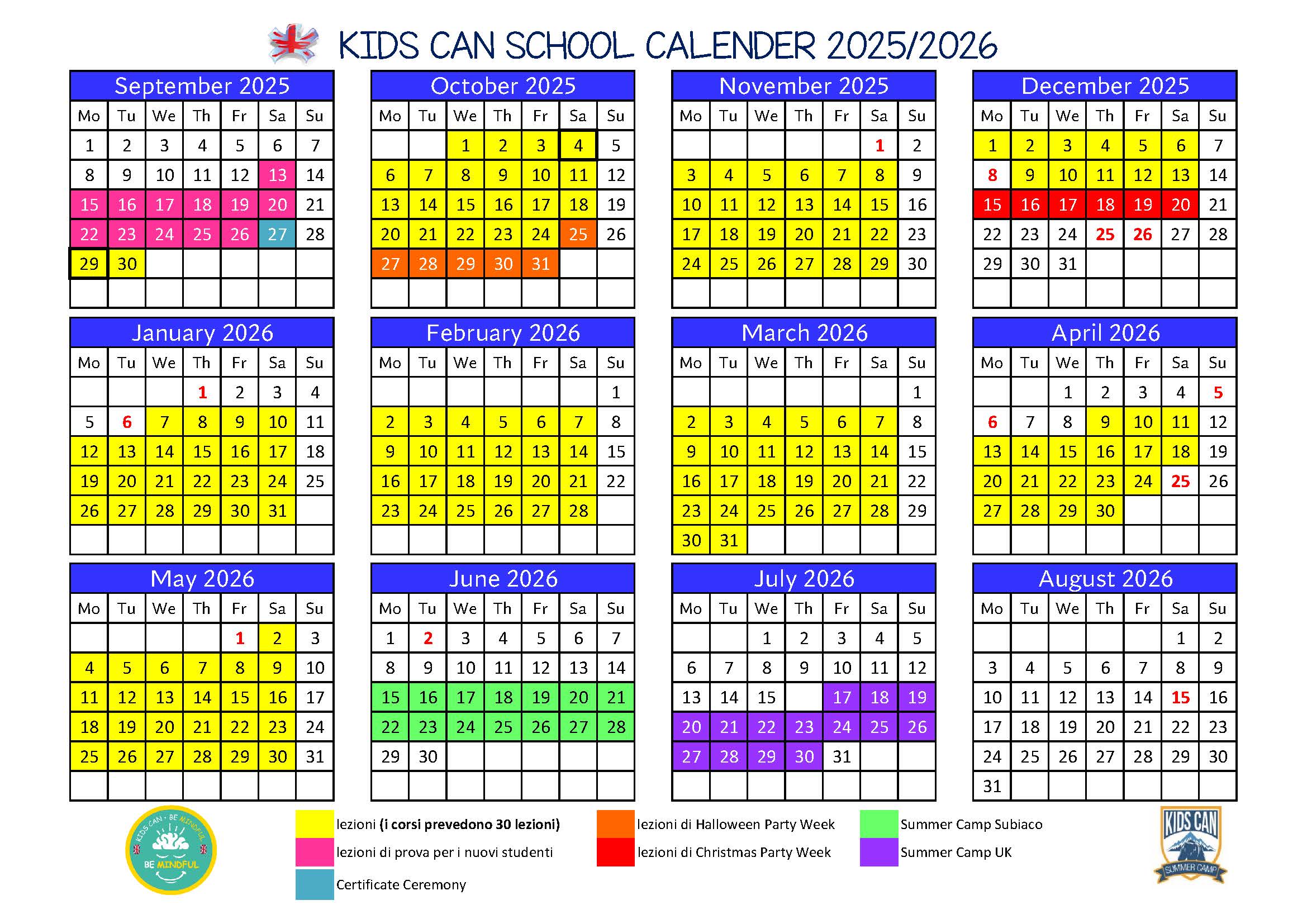 Calendario Scolastico Kids Can A.A. 2025/2026